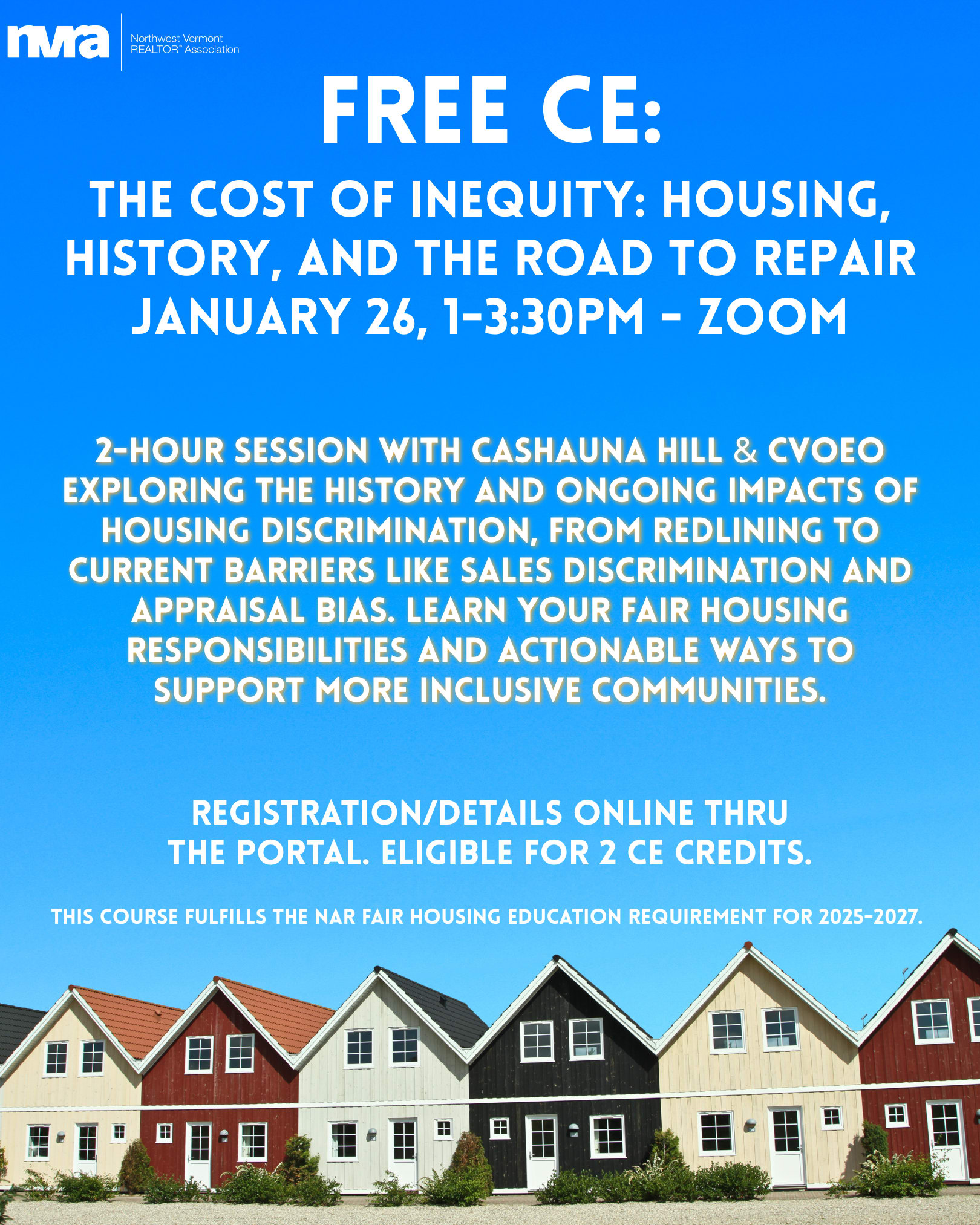 This 2 hour training, led by Cashauna Hill of The Redress Movement, explores the history and ongoing impacts of housing discrimination in the United States. Participants will learn how policies such as redlining and urban renewal shaped today’s communities, and how the Fair Housing Act was designed to address these injustices. The session will highlight current barriers to Black homeownership, including sales discrimination and appraisal bias, while connecting these challenges to wealth and equity gaps. Attendees will leave with a deeper understanding of housing history, fair housing responsibilities, and practical ways to promote more inclusive communities.This course fulfills the NAR Fair Housing Education requirement for 2025-2027.