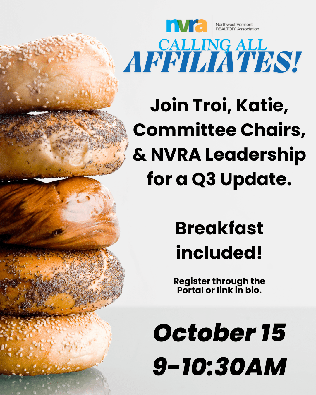 NVRA Affiliates are invited for a Q3 NVRA update with Troi, Katie, Committee Chairs, and NVRA leadership. Breakfast included!Additional Info