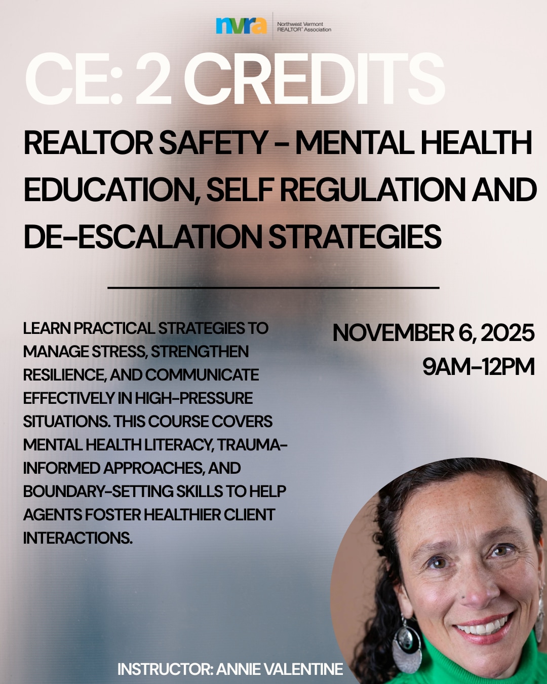 In today’s fast-paced real estate industry, the pressures of the market, client demands, and constant availability can take a toll on both professionals and clients. This course equips real estate agents with essential tools to navigate these challenges by building mental health literacy and practical strategies for resilience. Participants will explore the four pillars of mental health literacy, learn to recognize signs of stress and distress in clients, and strengthen their ability to communicate effectively in high-pressure situations. With an emphasis on trauma-informed approaches, de-escalation techniques, and maintaining professional boundaries, agents will walk away with skills to foster healthier, more respectful interactions in their work. Instructor: Annie Valentine, https://www.annievalentinecc.com/aboutAdditional Info