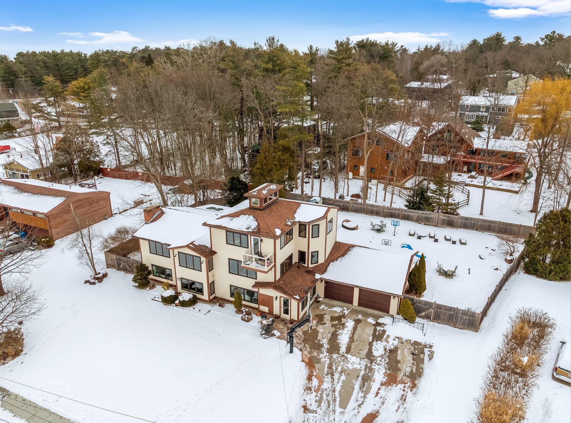 Pool with electric sliding cover, indoor hot tub, private mooring, private neighborhood beach.