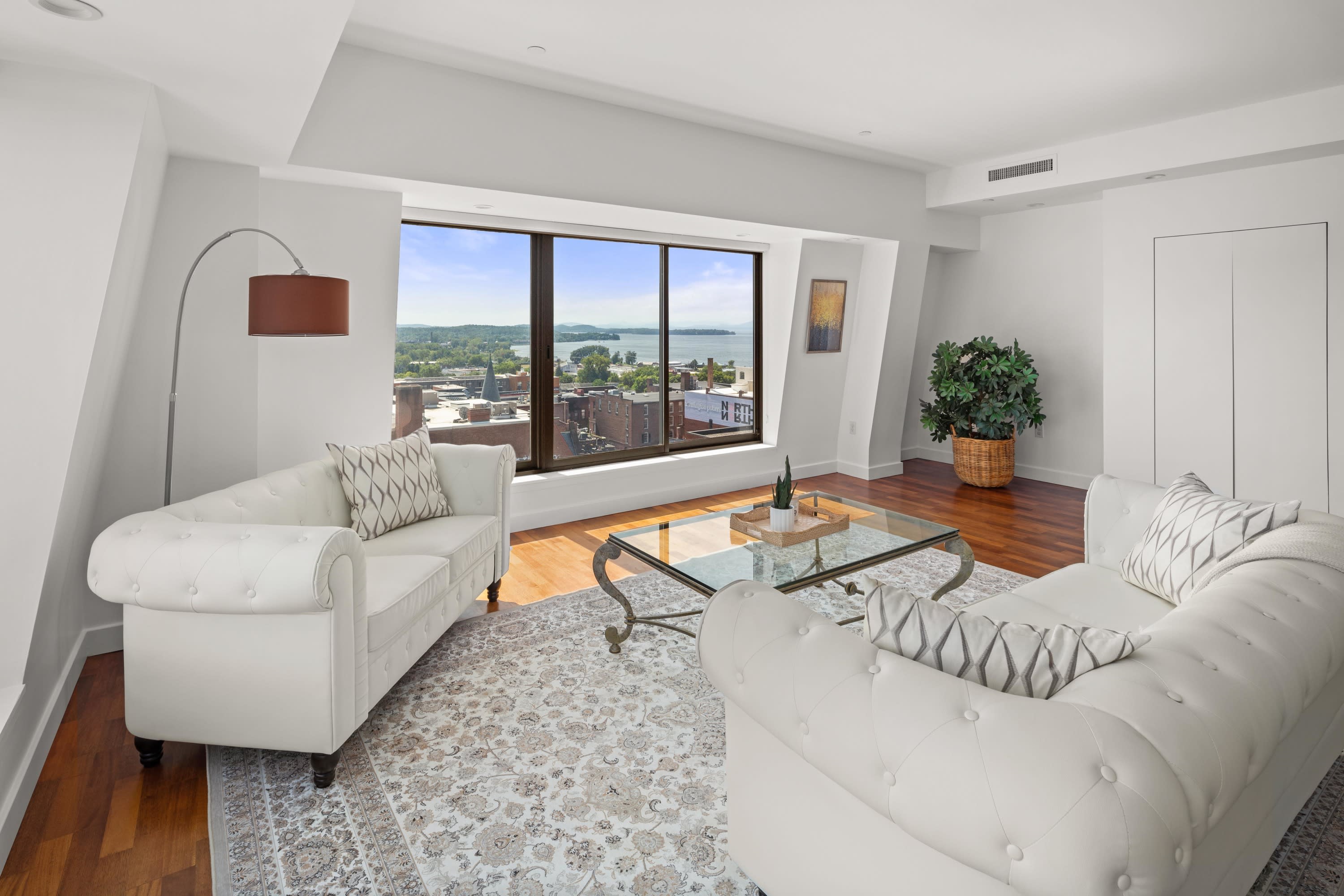 Special Features: Enjoy downtown living in this exclusive condo in the heart of Burlington. This Corporate Plaza condo is one of only four condos on the 8th floor of 76St Paul Street. Upon entry you will be in awe of the panoramic view of Lake Chaplain and the Adirondack Mountains , through the wall of windows facing south west. Flooded with sunlight , the living/dining room, recently freshly painted is a large open space. You will enjoy entertaining and sharing the amazing views. The kitchen with granite counters and eat at counter space is open to the dining /kitchen area, A lovely Primary Suite with updated bathroom, is a perfect place to unwind. The second bedroom with views to the east . An additional updated bathroom for guests or Family members. A cozy den for watching your favorite shows or work from home , even has a murphy bed built in for extra guests. Enjoy easy access to downtown Burlington lake front, shopping and restaurants, festivals. Two parking spots in the garage are very convenient. Close to UVM medical Center, airport and colleges.
